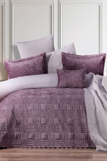 Taç Baskılı Gleam Çift Kişilik Pike Takımı Lila