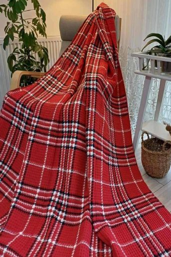 İrina Çift Kişilik Pamuklu Skoç Petek Desenli Tv Battaniyesi 200*220
