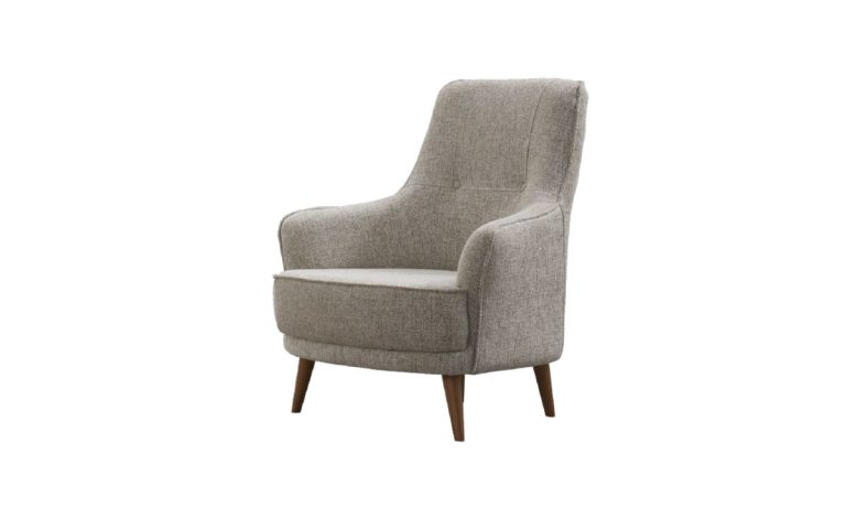Bologna Modern Berjer – Gri Keten Dokulu Tekli Koltuk / Masif Ahşap Ayaklı