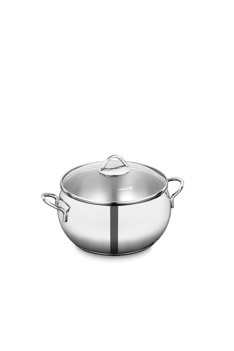 Korkmaz A1076 Tombik Derin Tencere – 26 cm, 18/10 Paslanmaz Çelik, 6.3 Litre Hacimli, İndüksiyon Uyumlu ve Isıya Dayanıklı Cam Kapaklı Modern Pişirme Tenceresi