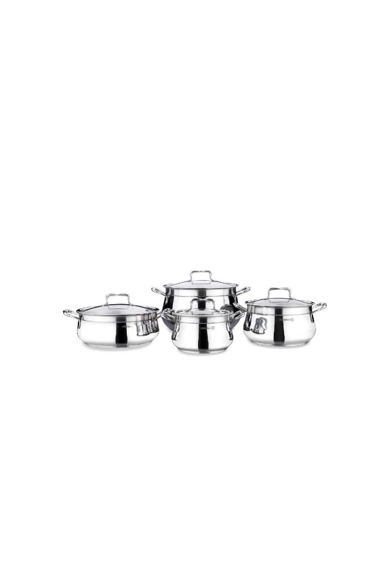 Korkmaz A1848-3 Bella Füme 8 Parça Tencere Seti – 18/10 Paslanmaz Çelik, Isıya Dayanıklı Cam Kapaklı, İndüksiyon Uyumlu ve Füme Bakalit Saplı Şık Pişirme Seti