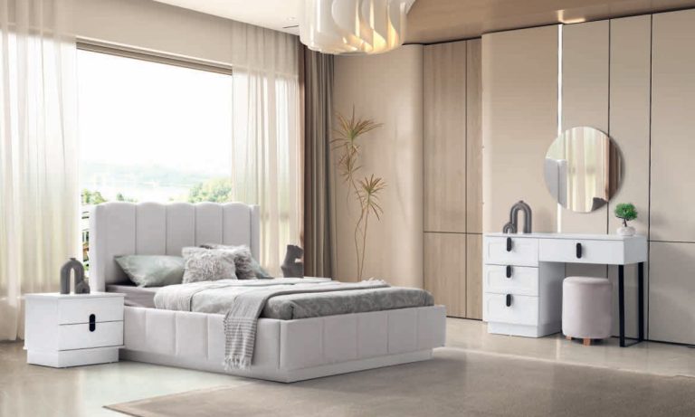 Atlas Modern Baza ve Başlık Seti – Dikey Fitilli Yan Paneller, Yüksek Segmentli Başlık, Sandıklı Depolama