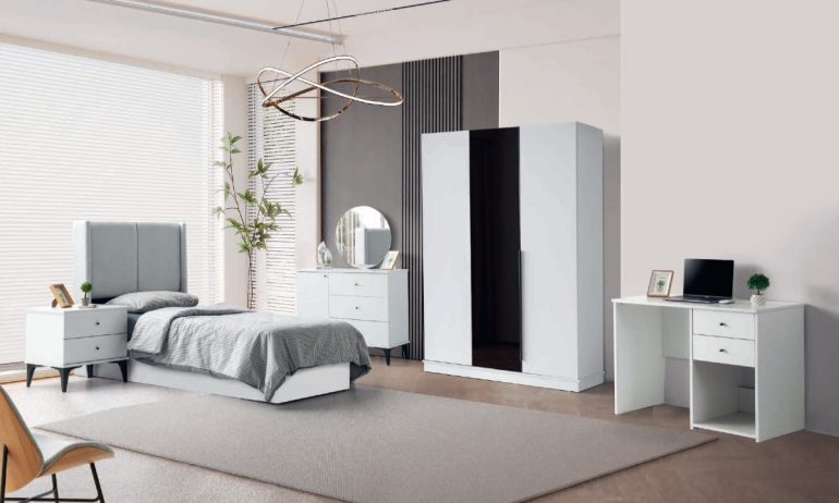 Melinda MDF Genç Odası Takımı – Siyah Beyaz Modern Genç Mobilyası