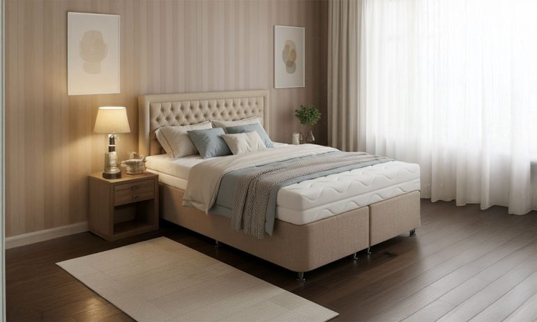 Venedik Karyola / Baza Seti – Yuvarlak Hatlı Çerçeve, Bütünleşik Yastıklı Başlık, Sandıklı Depolama