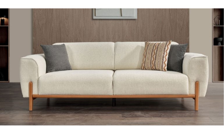 Urban Koltuk Takımı 3+3+1 – Ahşap Panelli Kolçak Detaylı, Dokulu Kumaş, Yüksek Ayaklı, Yataklı Modern Set