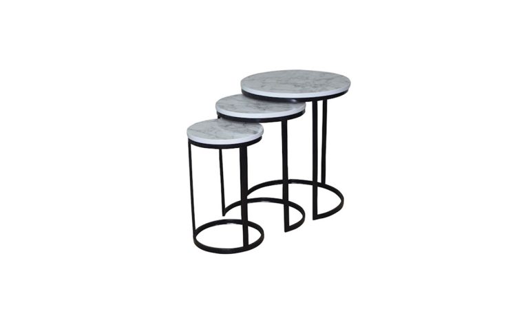 YUVARLAK DÜNYA ZİGON BOYALI – 3’lü Modern Mermer Desenli Zigon Sehpa Seti