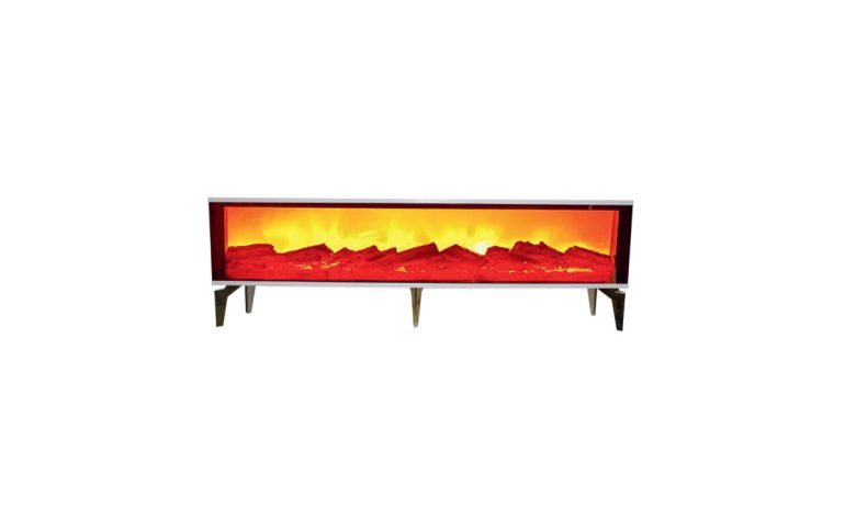 Yuvam 160 cm Şömineli TV Ünitesi – Beyaz Gövdeli, Panoramik Elektrikli Şömineli, Gold Ayaklı Modern Minimalist Tasarım