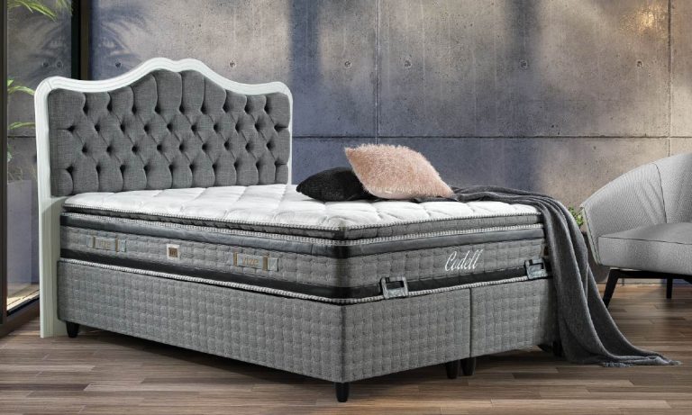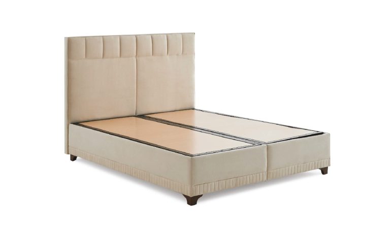 Arya Lüks Karyola / Baza Seti – Derin Kapitoneli Başlık, Dikey Fitilli Yan Paneller, Sandıklı Baza
