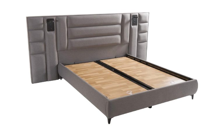 HKM Arex Geniş Baza – Sandıklı, Deri Görünümlü Kumaş Döşeme, Yüksek Başlıklı, Modern Çift Kişilik Baza