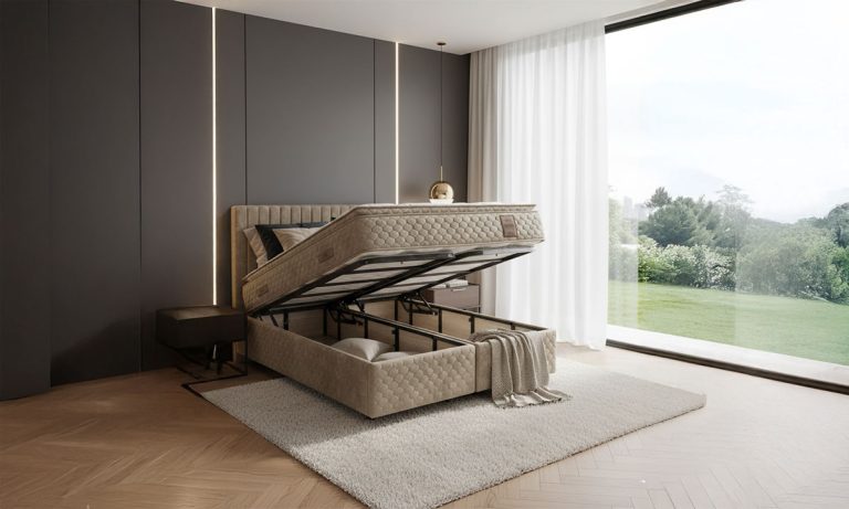 Palmera Modern Karyola / Baza Seti – Kanatlı Yüksek Başlık, Sandıklı Depolama Çözümü