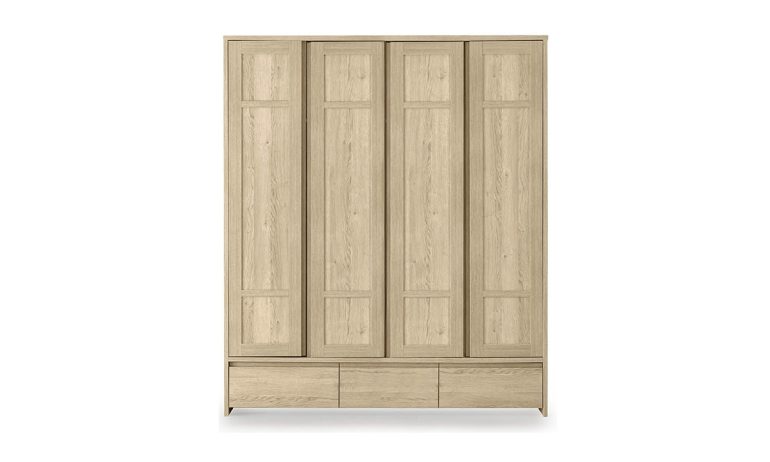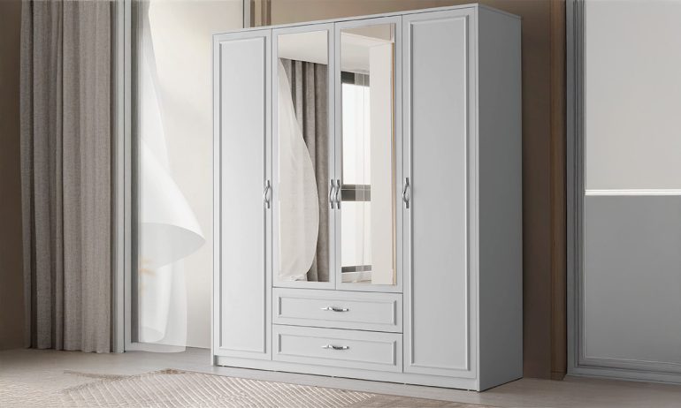 Sahra 4 Kapılı Aynalı Gardırop – 2 Çekmeceli, Country/Neoklasik Tasarım, Bol Raflı ve Askılıklı