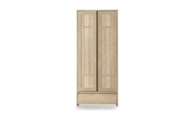 Vega 2 Kapılı Gardırop – Tek Çekmeceli, Açık Meşe Desenli, Dar Alanlar İçin İdeal, Askılıklı ve Raflı