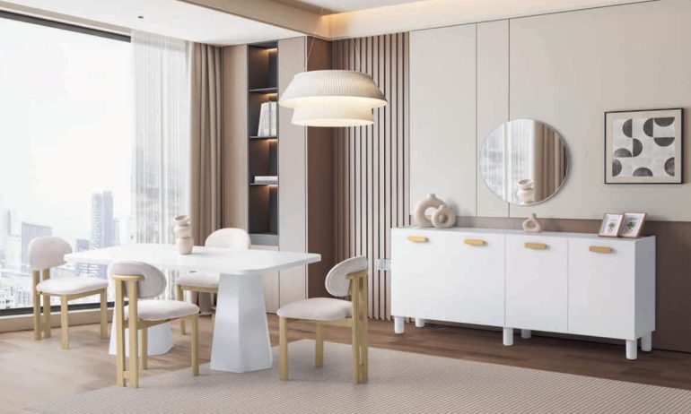 Afşin Modern Vintage Beyaz Yemek Odası Seti