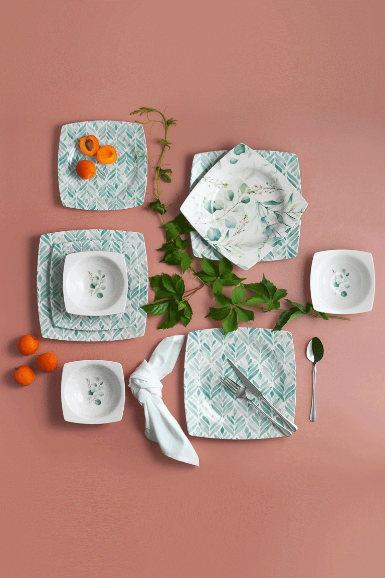 Neva N3410 Santana Basic 24 Parça Yemek Takımı – 6 Kişilik, Modern Geometrik Desenli, Porselen Sunum Seti