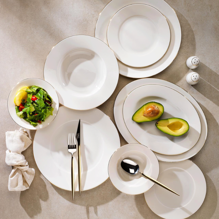 Schafer Adel Gold Yemek Takımı 56 Parça – 12 Kişilik, Yuvarlak Porselen, Altın İnce Çizgili Zarif Tasarım
