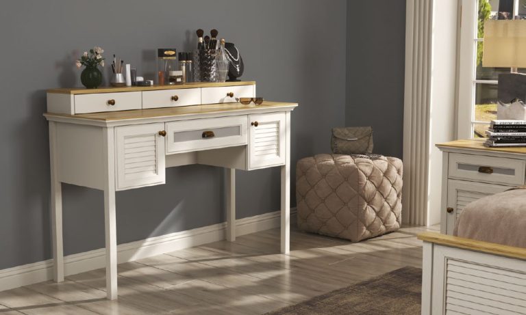 Misto Şifonyer / Makyaj Masası – Country Tarzı, Ahşap Tablalı, 1 Çekmece & 2 Kapaklı, Yüksek Ayaklı
