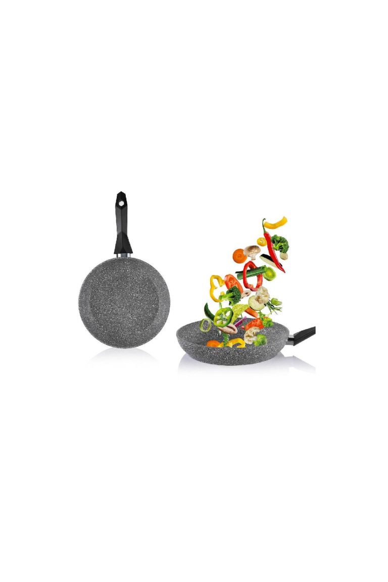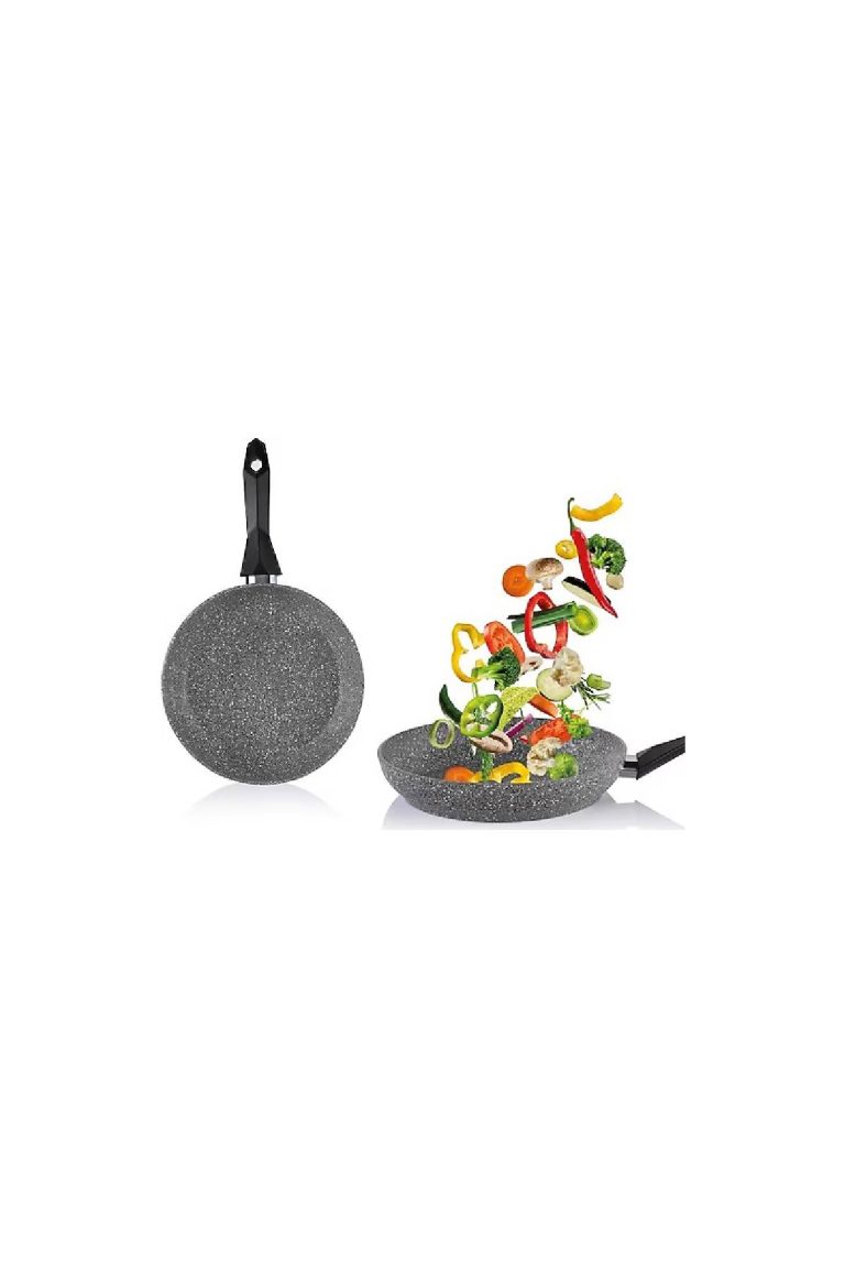 Schafer Cory Yanmaz Yapışmaz Granit Wok Tava 28 cm – Ergonomik Bakalit Kulp, Gri