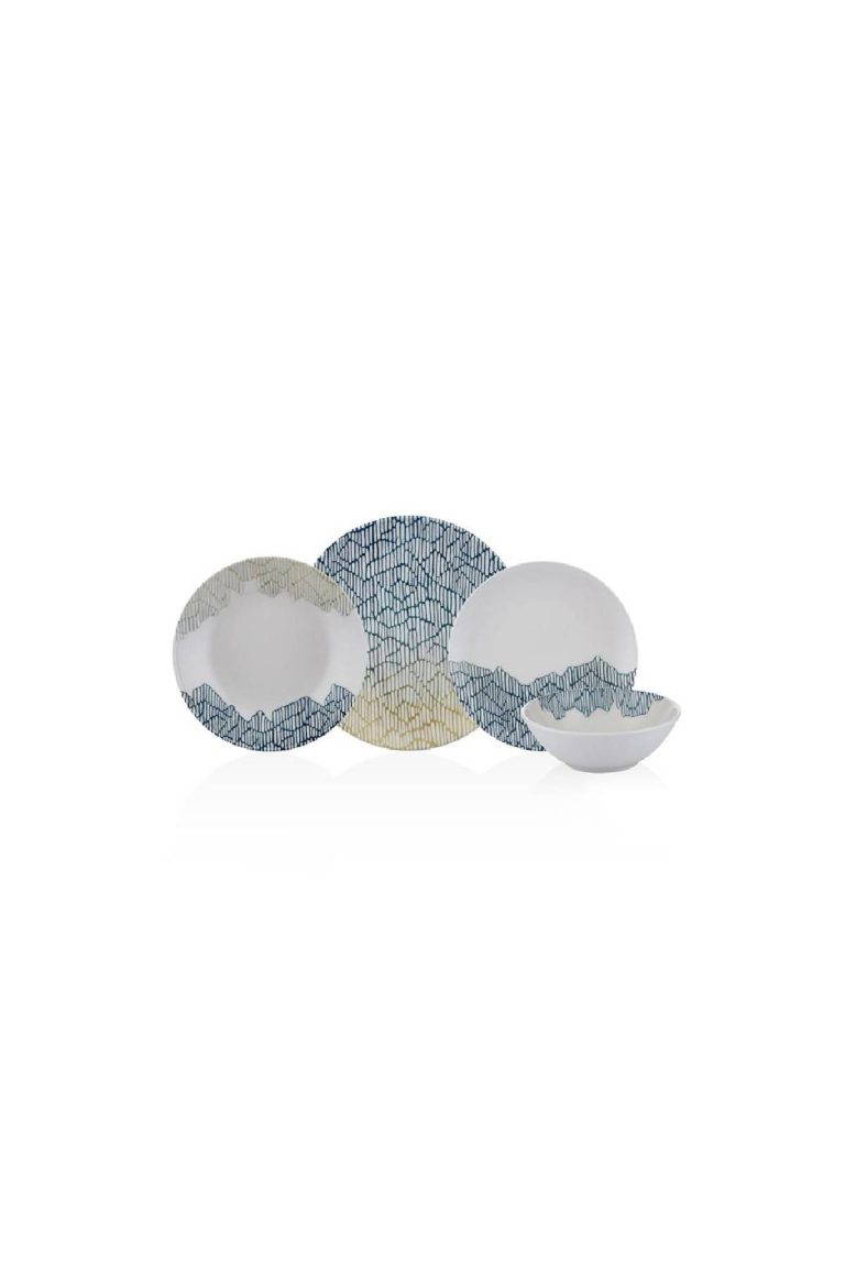 Neva N3410 Santana Basic 24 Parça Yemek Takımı – 6 Kişilik, Modern Geometrik Desenli, Porselen Sunum Seti