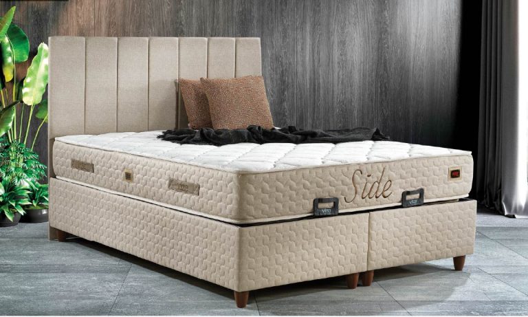 Side Lüks Yatak Seti – 150×200 cm (Çift Kişilik), Dikey Dikişli Başlık, Sandıklı Baza ve Paket Yaylı Yatak