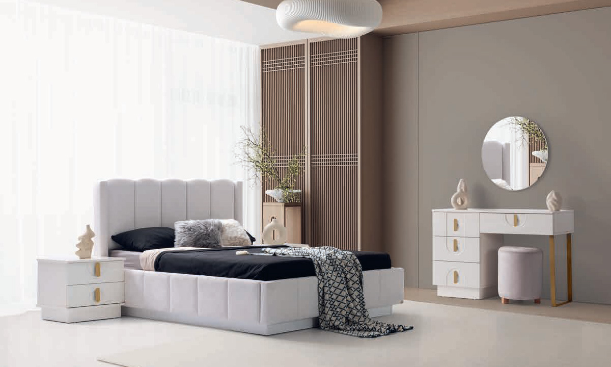 Ada MDF Yatak Odası Takımı – Beyaz / Gold