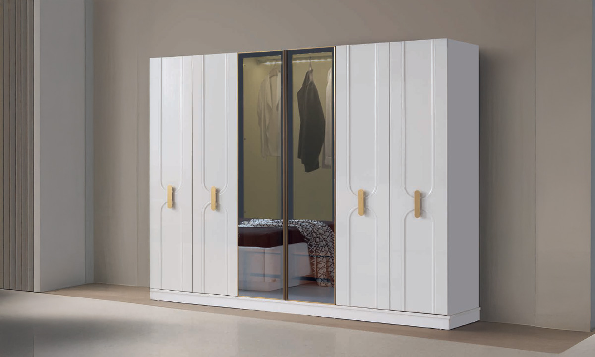 • Gardırop Tipi: 6 Kapılı (2 Reflekte Cam + 4 CNC İşlemeli MDF Kapak)