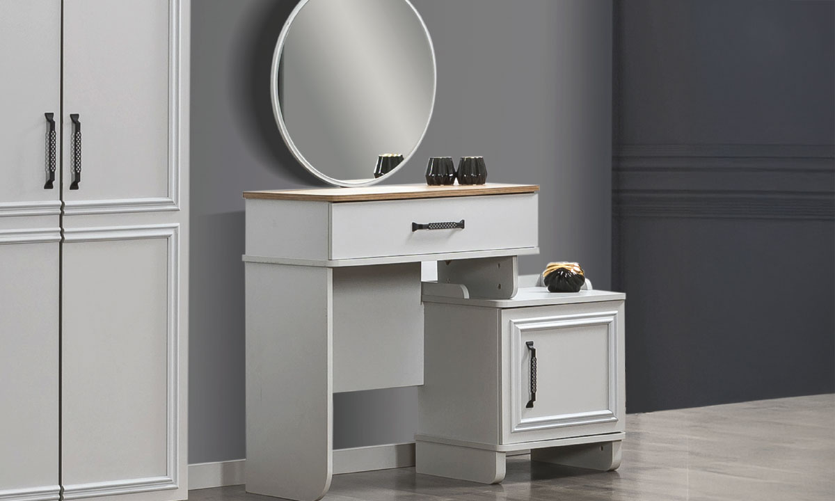 Bahar Şifonyer, hem makyaj masası hem de küçük bir çalışma masası olarak kullanılabilir. Özellikle klasik ve avangart detaylara sahip yatak odası takımları ile uyum sağlar.