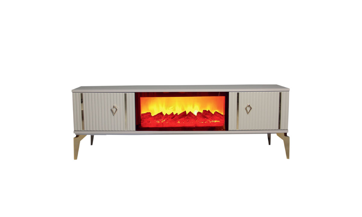 • Entegre Elektrikli Şömine: Ünitenin merkezinde yer alan şömine, gerçekçi alev efekti ile ortama sıcak ve davetkar bir hava katar.