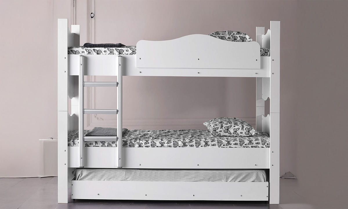 • 3 Kişilik Fonksiyonellik (Ranza + Yavrulu Yatak): Standart üst ve alt yatağın yanı sıra, alt kısımda tekerlekli, kolayca açılıp kapanabilen üçüncü bir yavrulu yatak (çekmeceli yatak) bulunur. Bu özellik, misafirleriniz veya üç kardeş için pratik ve hızlı bir çözümdür.