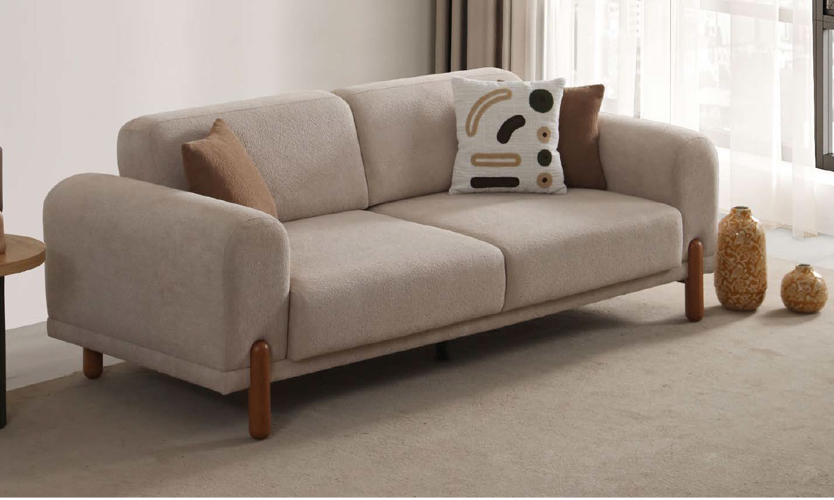 Ürünün en dikkat çekici özelliklerinden biri olan kavisli kol yapısı ve bütünleşik sırt tasarımı, minimalist bir şıklık sunar. Gövde tasarımını tamamlayan ceviz tonlarındaki masif ahşap ayaklar, hem retro bir hava katar hem de yerden yüksek yapısı sayesinde robot süpürge kullanımına ve zemin temizliğine tam uyum sağlar. Sağlam iç iskelet yapısı ve çökme yapmayan yüksek yoğunluklu sünger teknolojisi, uzun yıllar boyunca ilk günkü formunu korumasını sağlar.