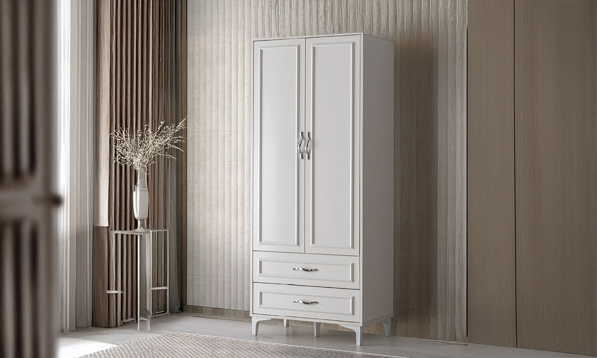 Buğra 2 Kapılı Gardırop ile dar alanlarda bile zarafetten ve düzenli depolamadan ödün vermeyin.