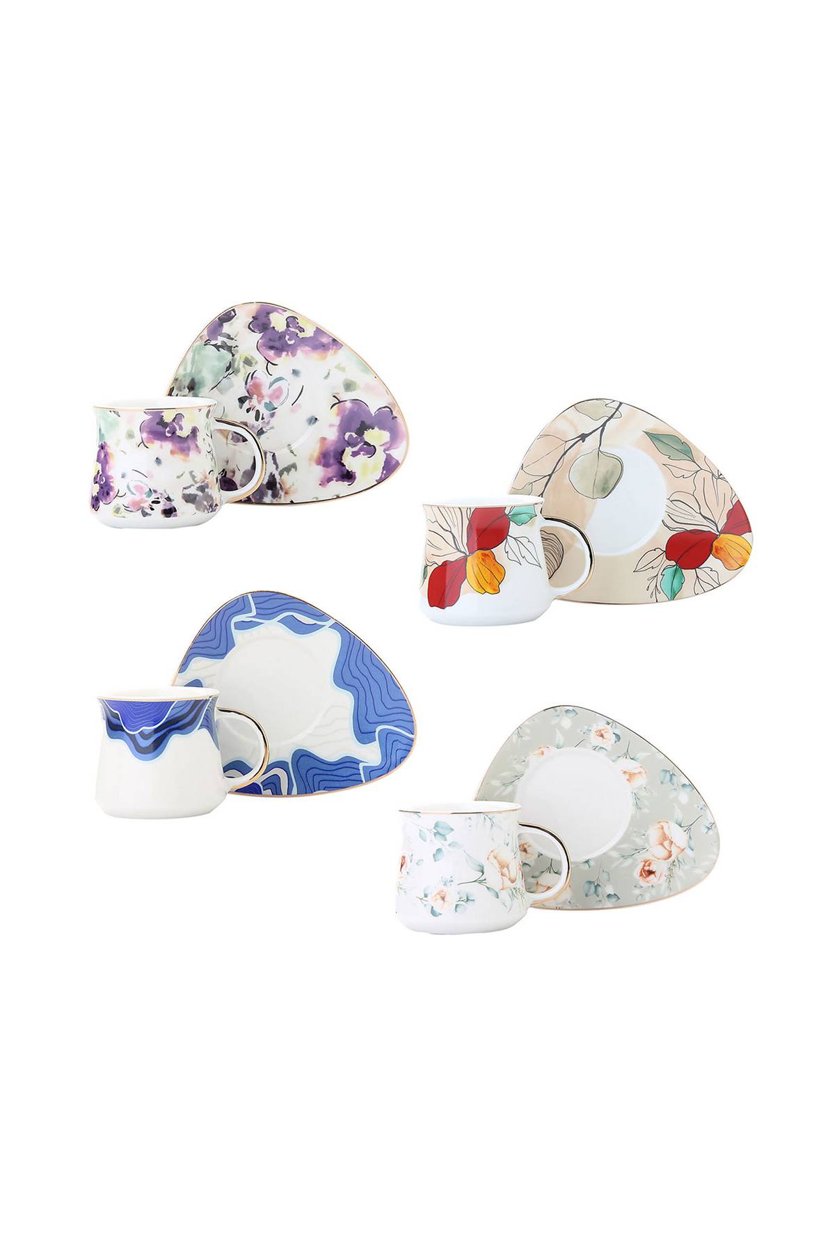 • Tasarım: 4 farklı desenli fincan ve tabak seti