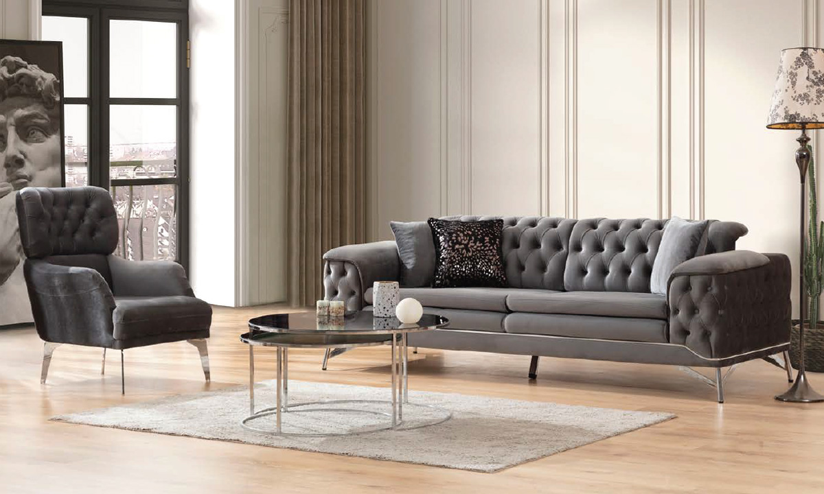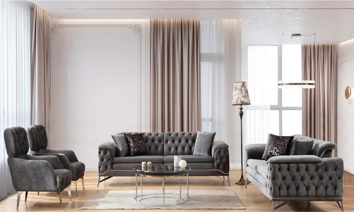 Modern yüksek ayak yapısı, zeminden temizlik kolaylığı sağlarken, takımın zarif formunu tamamlar. Şıklığı, konforu ve kaliteyi bir arada sunan Ester Koltuk Takımı, yaşam alanınızın odak noktası olur.