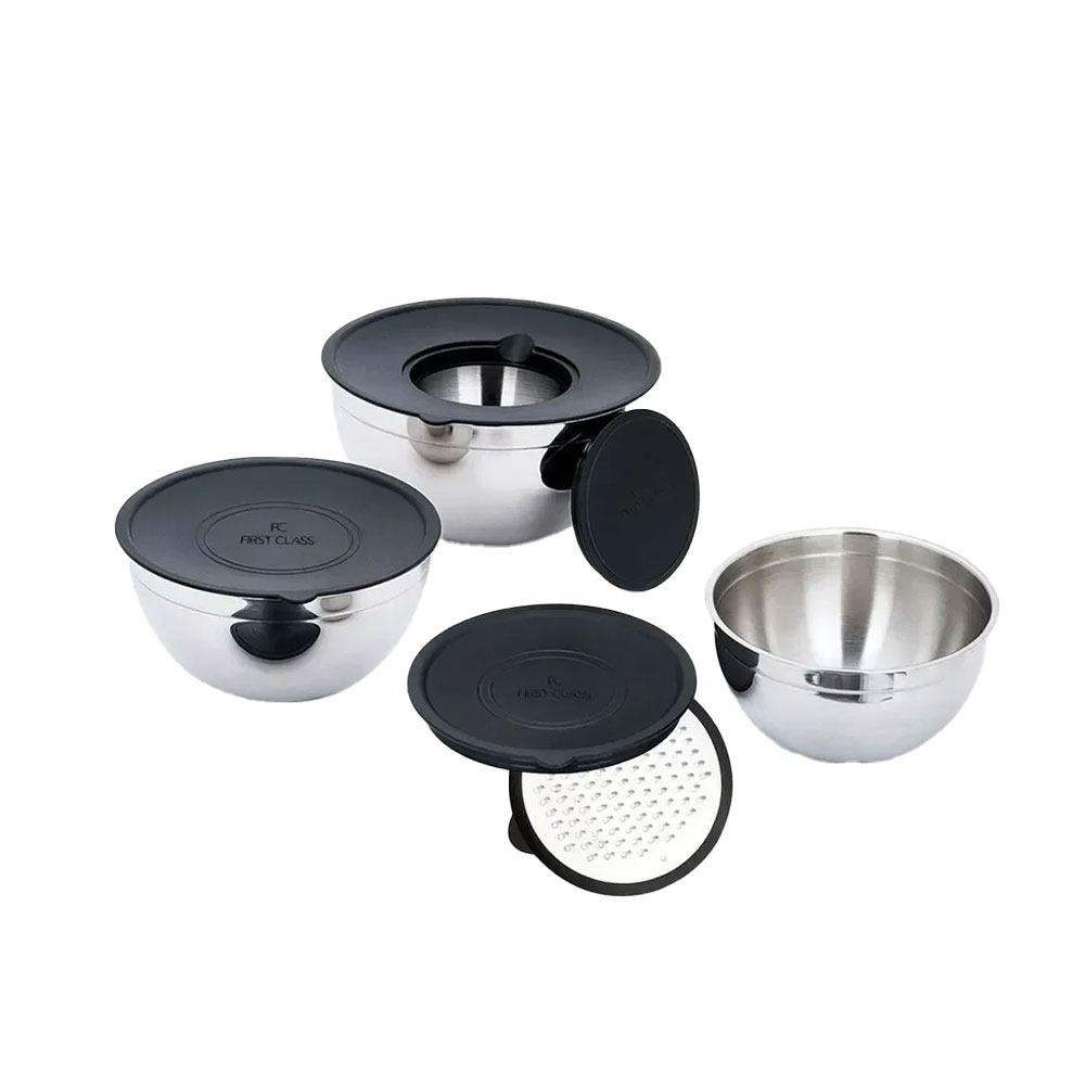 First Class 9 Parça Rendeli Çelik Saklama Kabı Seti – Paslanmaz Çelik, Kapaklı, Çok Amaçlı Kullanım