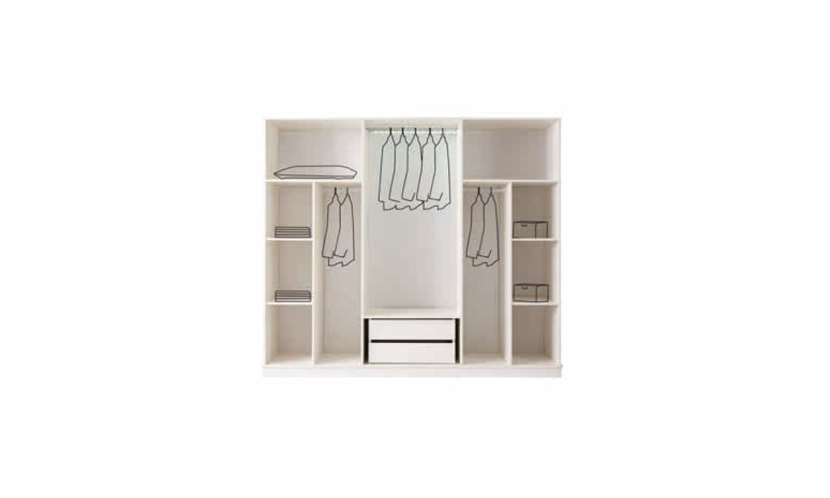 Geniş Depolama Kapasitesi: 6 kapaklı modüler yapısıyla askı bölmeleri ve çok amaçlı raflardan oluşan fonksiyonel iç tasarım.