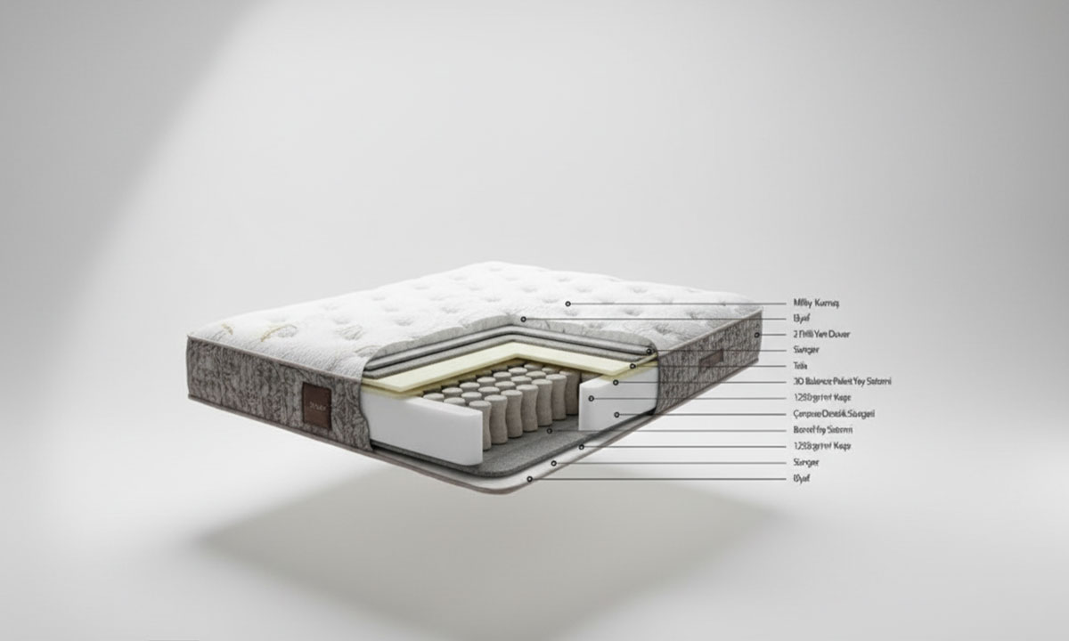 Yüksek mukavemetli bonel yayın desteklediği, bağımsız hareket kabiliyetine sahip paket yayların ve zengin dolgu katmanının bir araya geldiği box spring etkili ProMilky yatak vücut kıyımlarına kusursuzca uyum sağlayarak omurganın doğal eğriliğini korur. Esnek ve darbe emici özelliğiyle, uyku esnasında eşlerin birbirinin hareketlerinden etkilenmelerini önler.