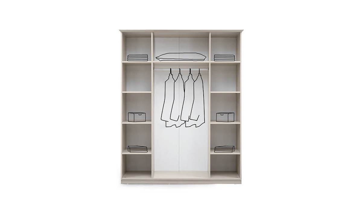 • Bol Raflı Bölümler: Gardırobun yanlarında ve üst kısmında yer alan çok sayıda derin raf, katlanmış giysi, çanta ve kutuları düzenlemeniz için idealdir.
