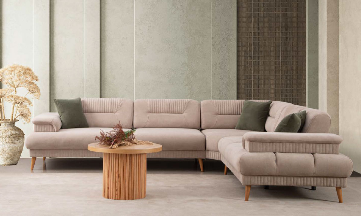 Geniş Modüler Yapı: 3’lü koltuk, köşe modülü ve 2’li koltuk kombinasyonuyla geniş aileler ve misafir ağırlamayı sevenler için ideal bir alan oluşturur.