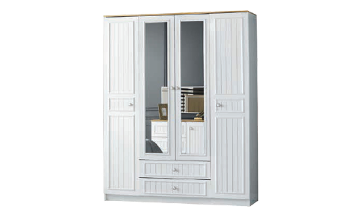 Zarif ve İdeal Boyutlar: Klas 4 Kapılı Yatak odanızda “Country” rüzgarları estiren Klas Serisi, 4 kapılı versiyonu ile daha dar alanlarda bile stilinizden ödün vermemenizi sağlıyor. Beyazın asaleti, kapaklardaki dikey çizgili (lambri) detaylar ve ahşap renkli üst taç ile birleşerek odanıza huzurlu bir hava katar.