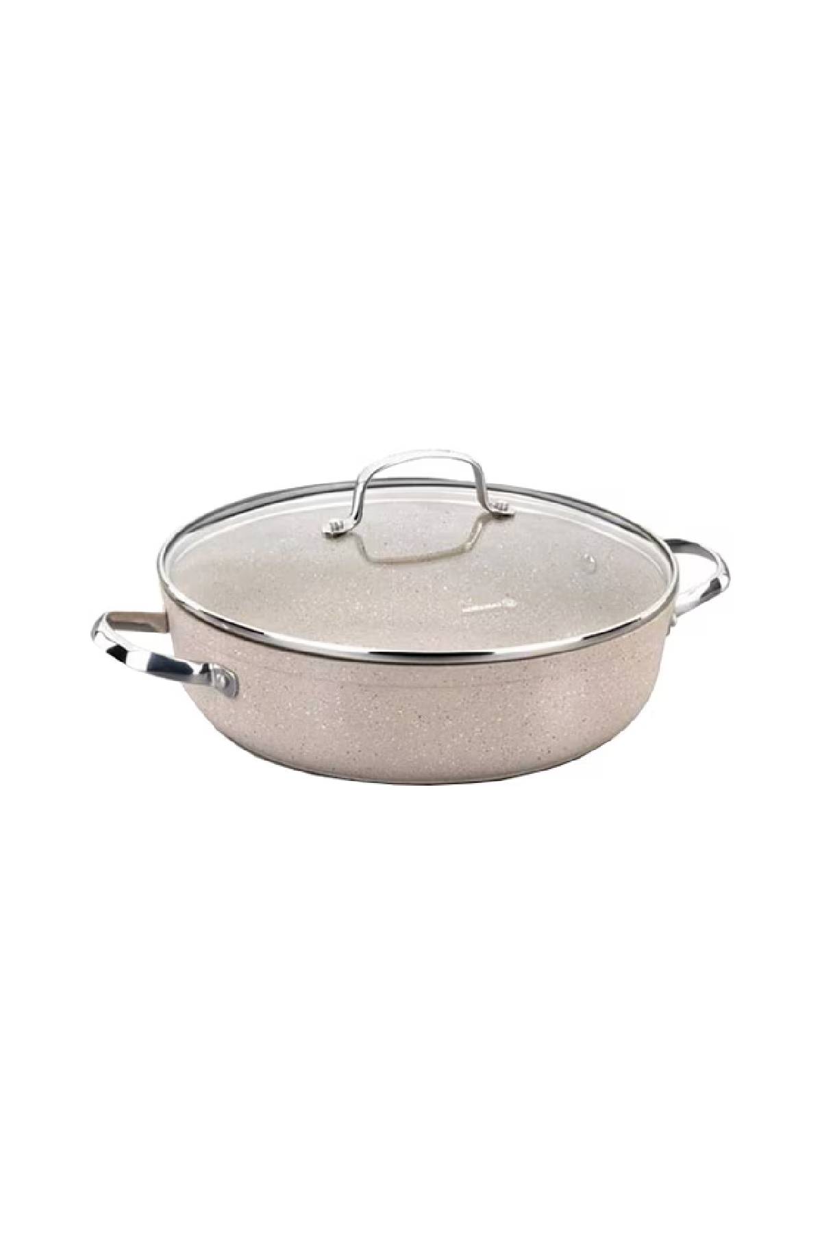 Korkmaz A1263 Granita Kısa Tencere – 26×7 cm, Yaklaşık 3.5 Litre Kapasiteli, Yapışmaz Granit Kaplamalı ve Isıya Dayanıklı Cam Kapaklı Modern Basık Tencere
