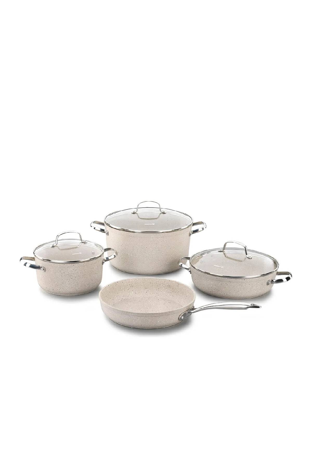 Korkmaz A1272 Granita 7 Parça Tencere Seti – Bej/Krem Granit Kaplama, Yapışmaz Yüzey, Isıya Dayanıklı Cam Kapaklı