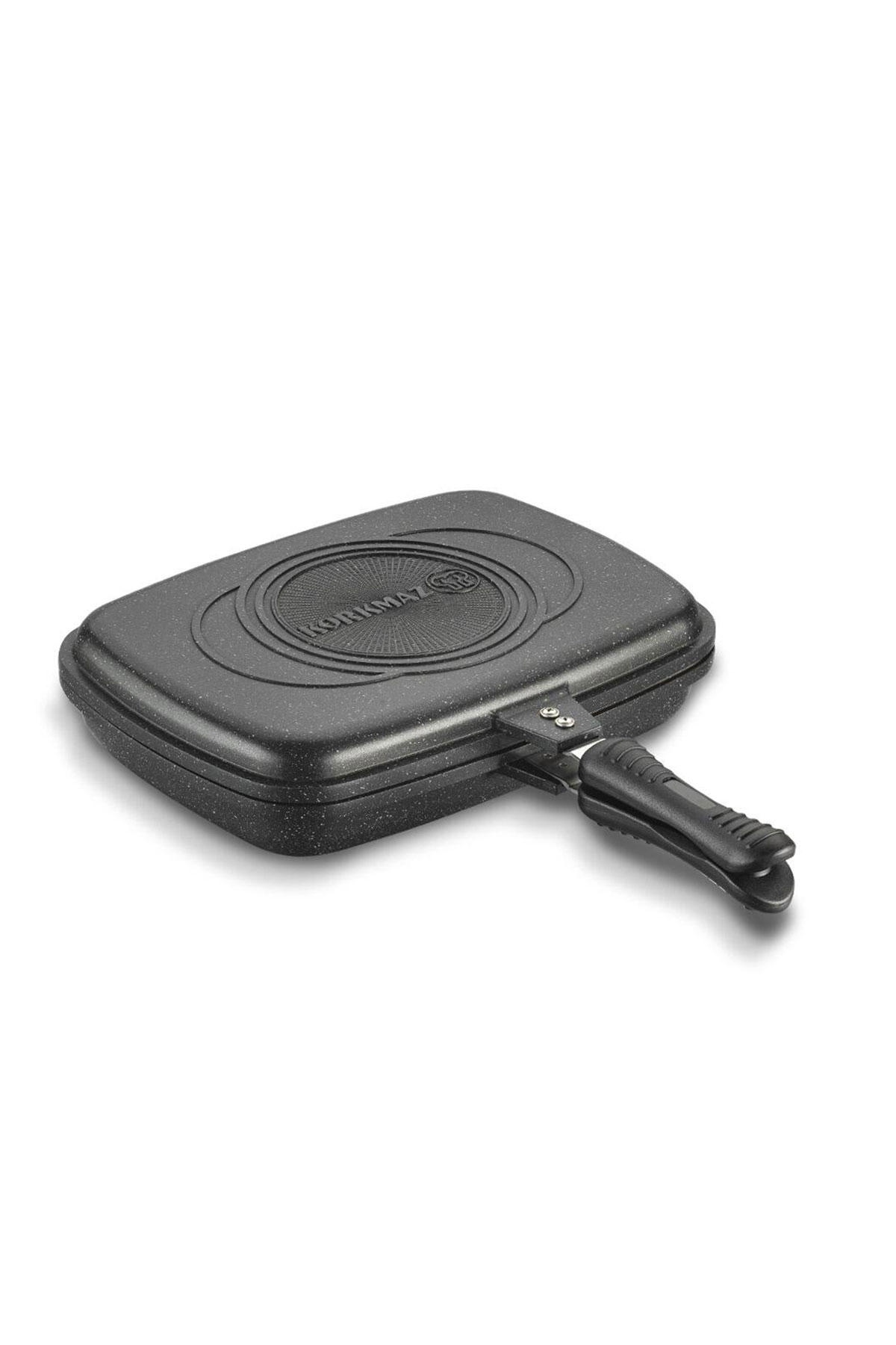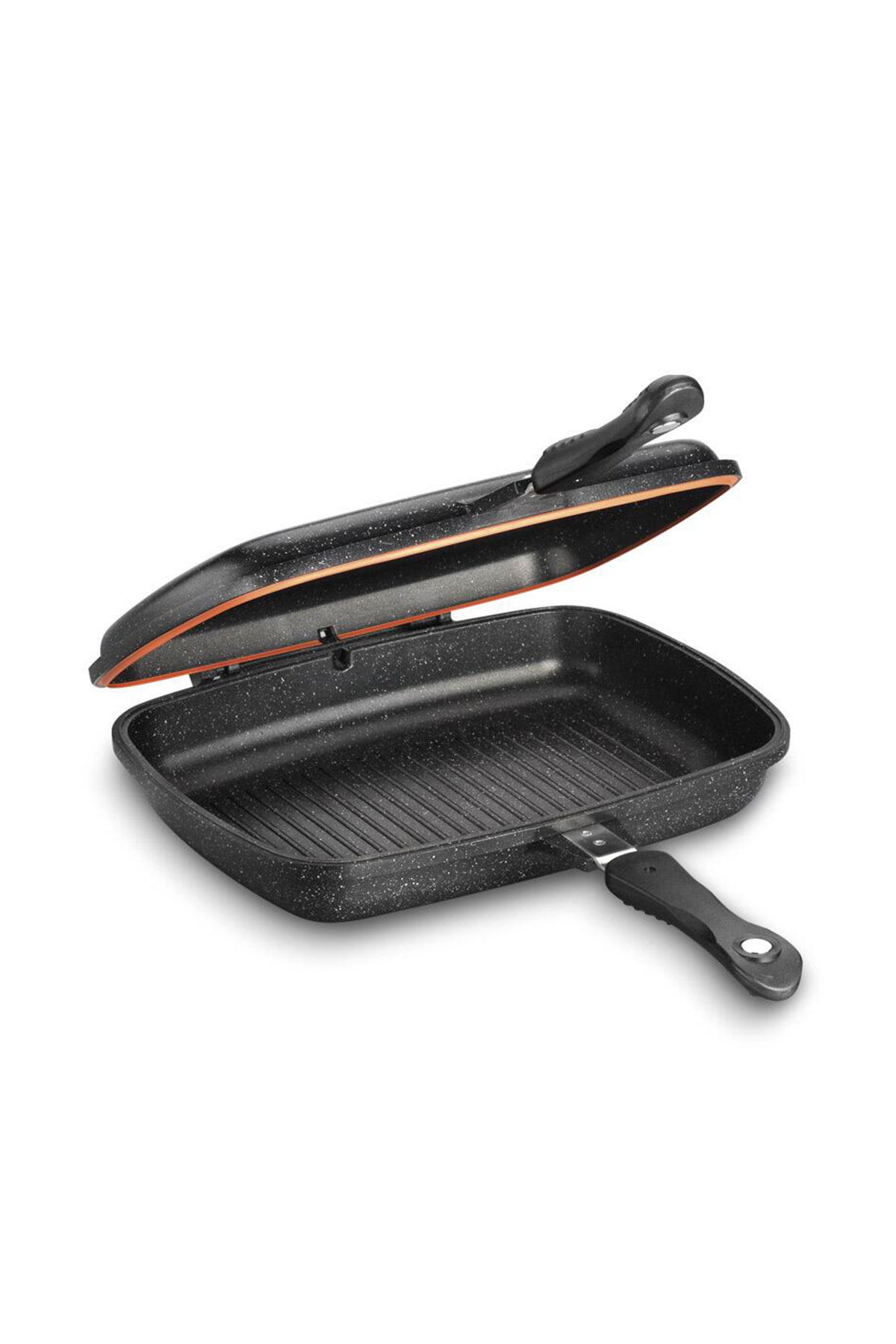 • Geri dönüşümlü, tamamen doğal malzemeden, çevre dostu teknoloji ile üretilen Duplo çizilmeye karşı ekstra dirençli granit görünümlü iç ve dış kaplama ile çok az yağ kullanarak lezzetli yemekler yapar. Çift taraflı kapakları sayesinde balık, tavuk, et ve kızartma pişirmek için tek bir çevirme hareketi yeterli.