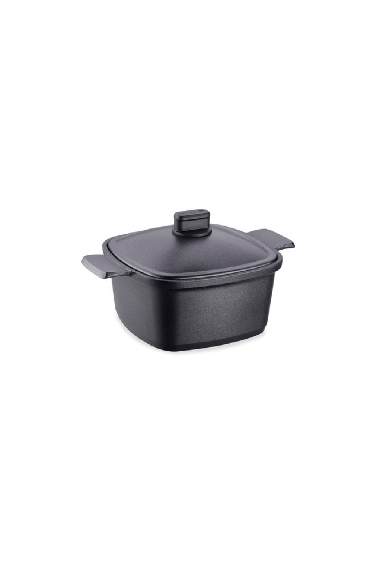 Korkmaz A1475 Casterra Kare Derin Tencere – 24×24 cm, 4.5 Litre, Granit Kaplamalı Döküm Gövde, İndüksiyon Uyumlu ve Şık Tasarımlı Siyah Tencere