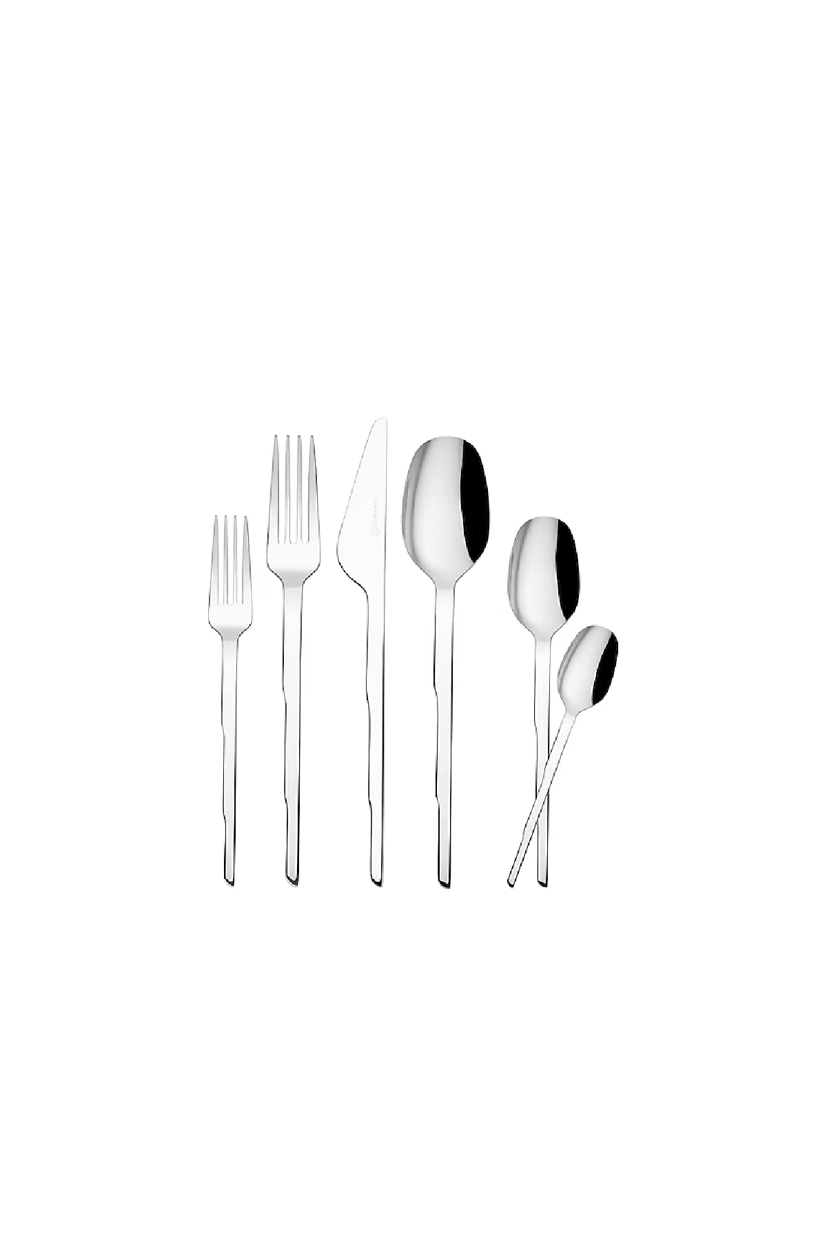• Ergonomik ve Dalgalı Tasarım: Çatal, bıçak ve kaşıkların saplarındaki akıcı, modern çizgiler sadece estetik değil, aynı zamanda ele tam oturan rahat bir tutuş da sağlar.