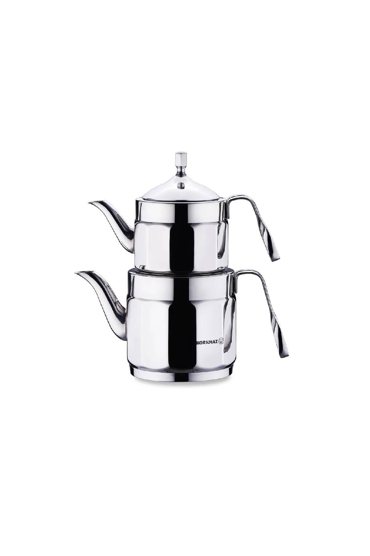 Korkmaz A2522 Nostaljia Maxi Çaydanlık Takımı – 18/10 Paslanmaz Çelik, Geniş Hacimli, Parlak Polisajlı ve Ergonomik Saplı Geleneksel Çaydanlık Seti
