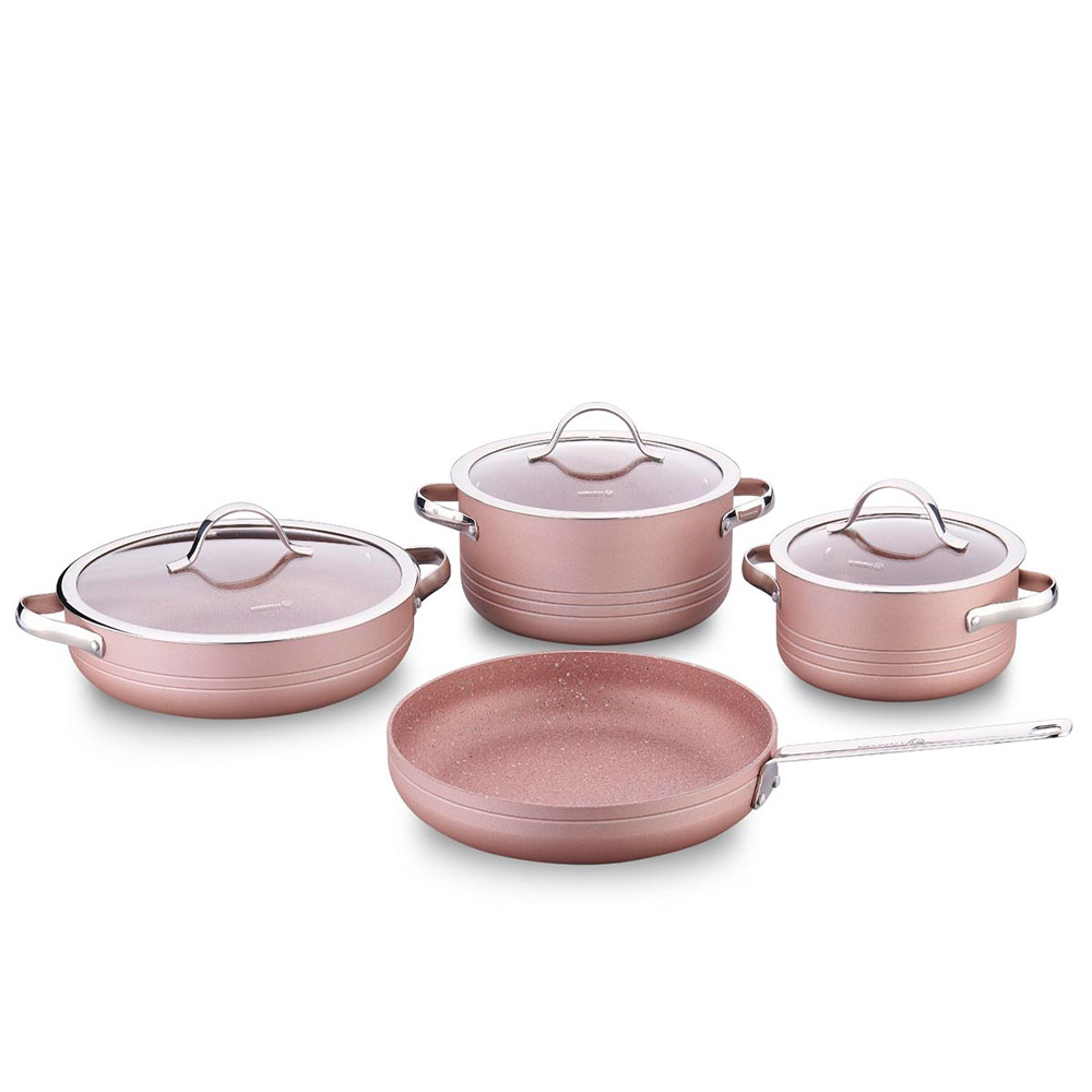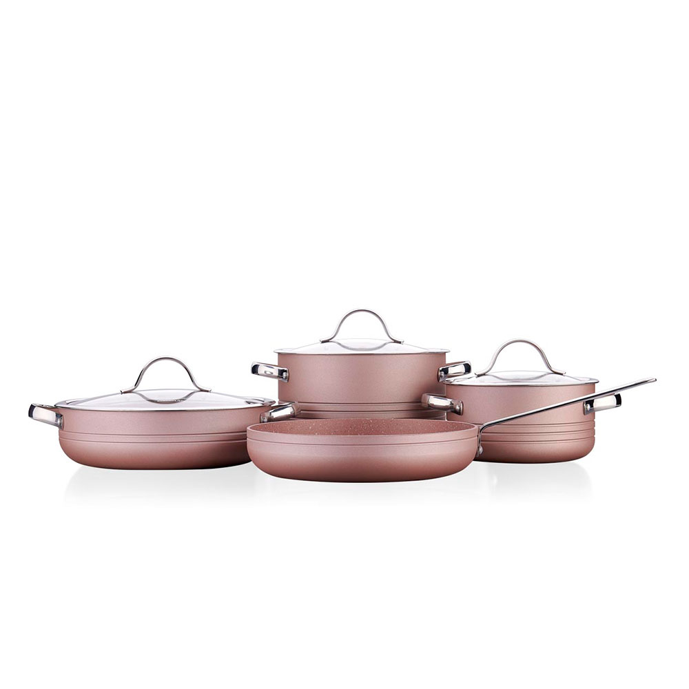 Korkmaz A2619 Linea 7 Parça Tencere Seti – Rosagold | Granit Efektli, Yapışmaz, Cam Kapaklı