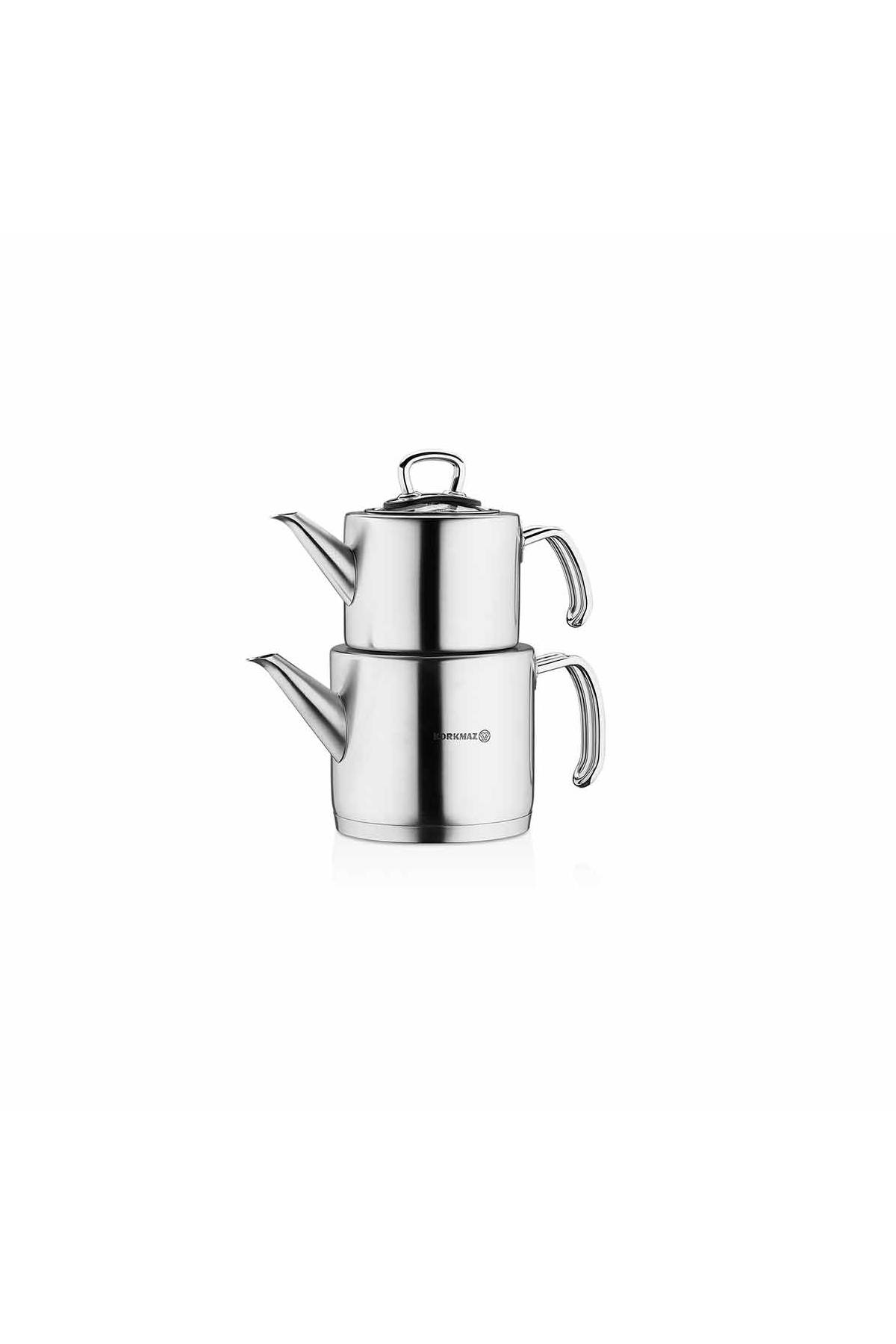Korkmaz A274 Proline Paslanmaz Çelik Çaydanlık Takımı – Profesyonel Seri, İndüksiyon Uyumlu, Ergonomik Metal Saplı Büyük Boy Çaydanlık