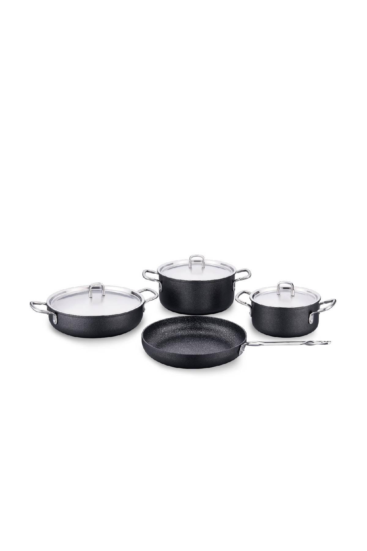 Korkmaz A2960 Doria 7 Parça Tencere Seti – Volkanik Görünümlü Granit İç Kaplama, Çizilmelere Karşı Ekstra Dayanıklı, Isıya Dayanıklı Cam Kapaklı ve Paslanmaz Çelik Saplı Mutfak Seti