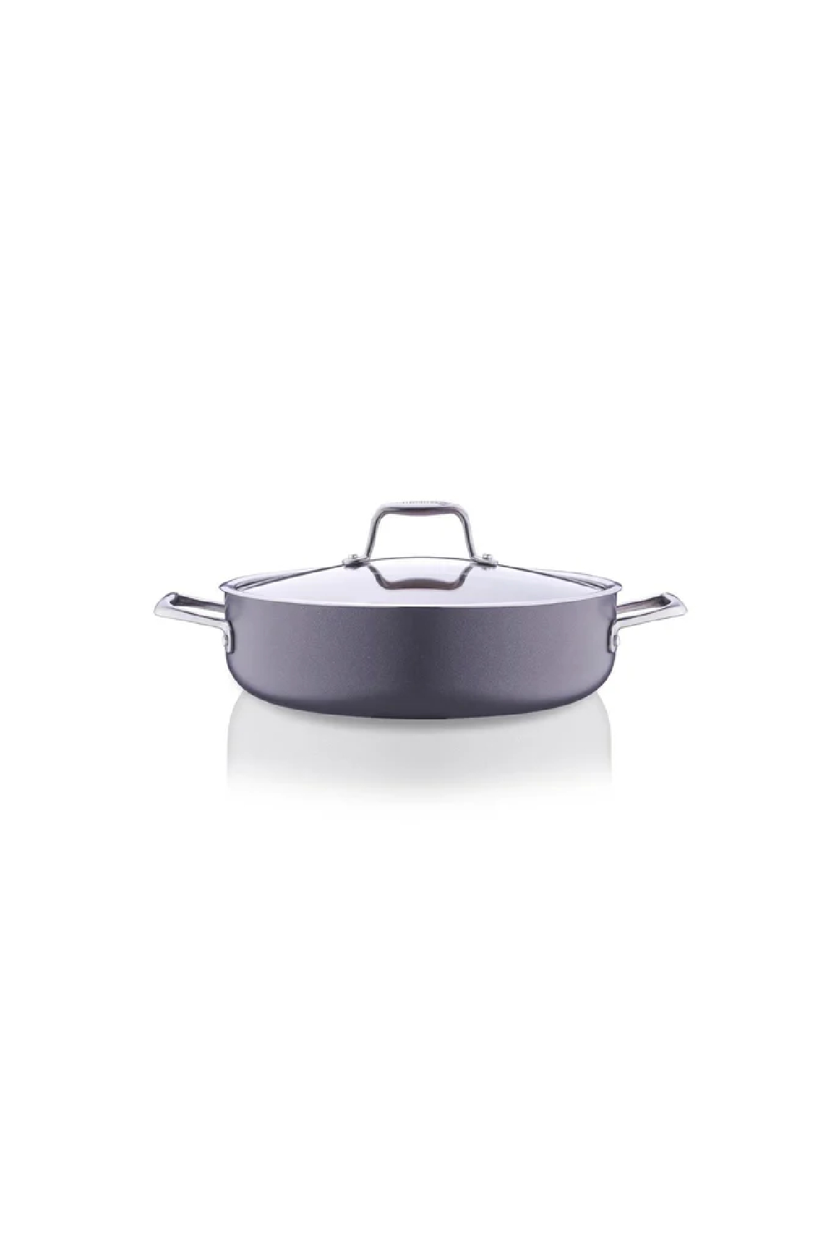 Korkmaz A3954 Boena Kısa Tencere, 24 cm çapı ve 7 cm derinliği ile pilav, sote, etli sebze yemekleri ve basık tencere tarifleri için mükemmel bir seçimdir. Modern antrasit dış rengi ve çift kulplu tasarımı, hem ocakta hem de masada şık bir sunum sağlar.