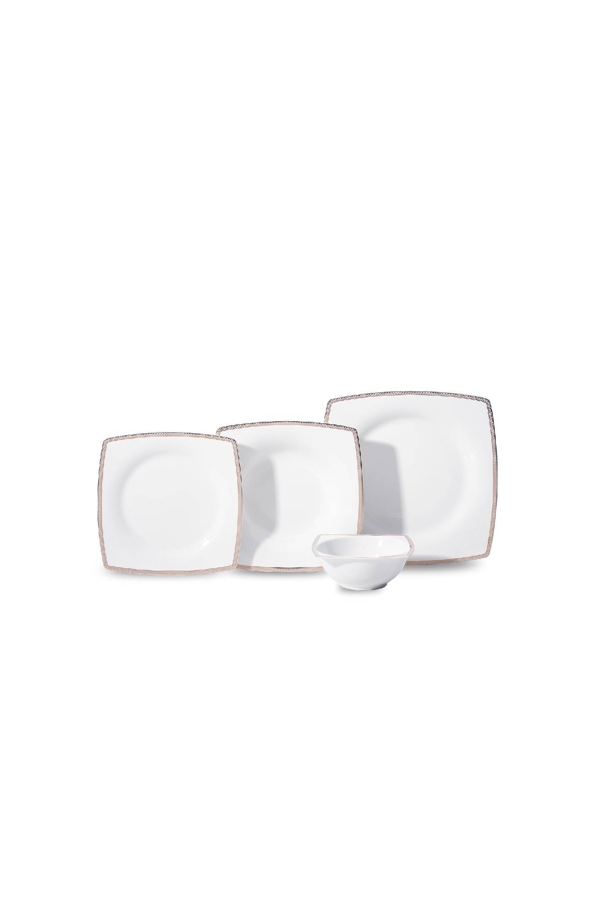Korkmaz A8079 Zena Collection 60 Parça Yemek Takımı – 12 Kişilik, Modern Kare Formlu, Platin Kenar Detaylı Lüks Porselen Takım