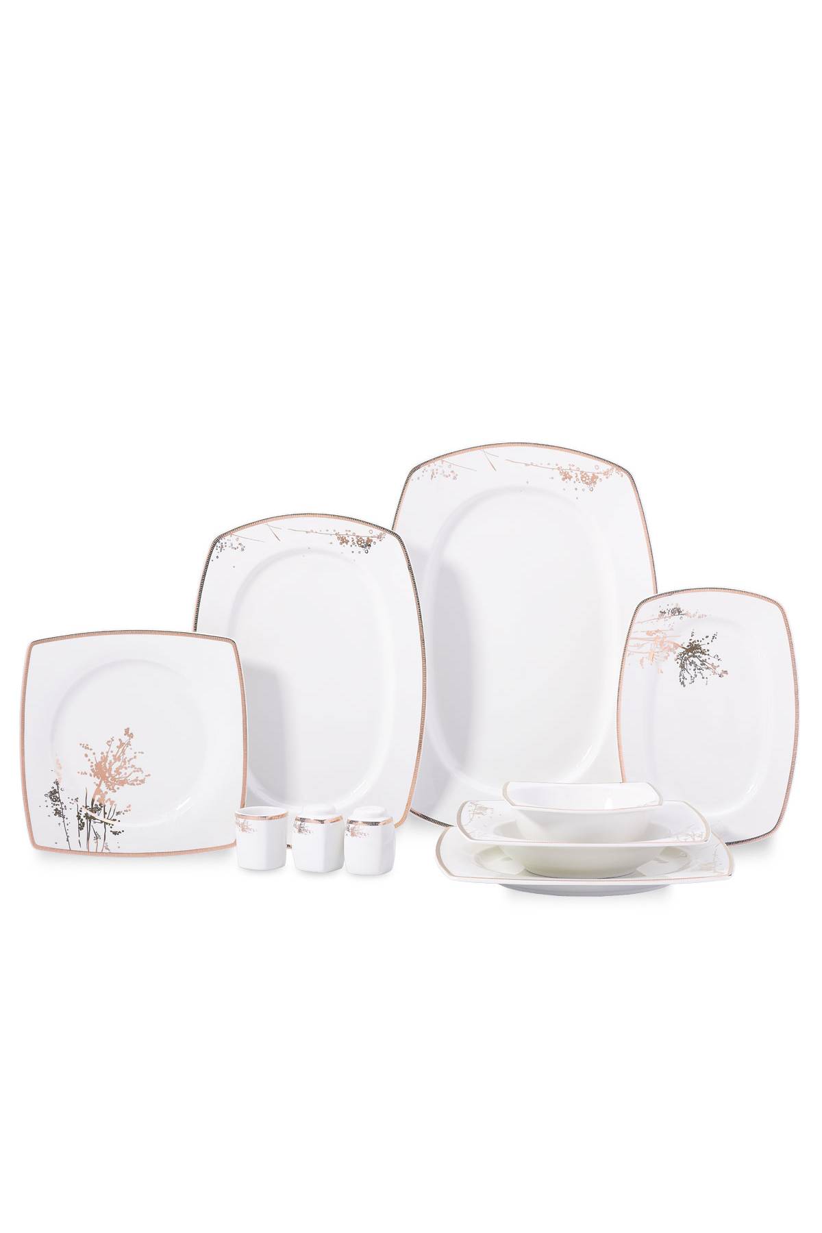 Korkmaz A8093 Zena Collection 60 Parça Yemek Takımı – 12 Kişilik, Kare Formlu, Gold Detaylı Bone Porselen Lüks Set